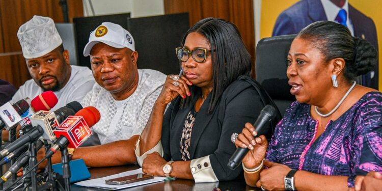 l-r: Special Adviserto the Governor on Tourism, Mr. Idris Aregbe; Chairman, Lagos State House of Assembly committee on Tourism and Culture, Hon. Bonu Solomon Saanu; Chairman/C.E.O, Nigerians in Diaspora Commission, NiDCOM, Hon. Abike Dabiri-Erewa and Commissioner for Tourism, Arts and Culture, Mrs. Toke Benson-Awoyinka, during a press briefing on the Fourth Door of Return at the Bagauda Kaltho Press Centre, the Secretariat, Alausa, Ikeja, on Monday, 09 October 2023.