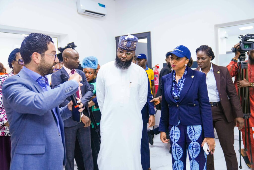 CEO of NASENI Troment Limited, Dr. Selim Hani;  Executive Vice Chairman/CEO, National Agency for Science and Engineering Infrastructure (NASENI), Mr. Khalil Suleiman Halilu; Minister of Industry, Trade and Investment, Dr. Jumoke Oduwole during the minister’s tour of NASENI facilities on Monday, August 11, 2025.