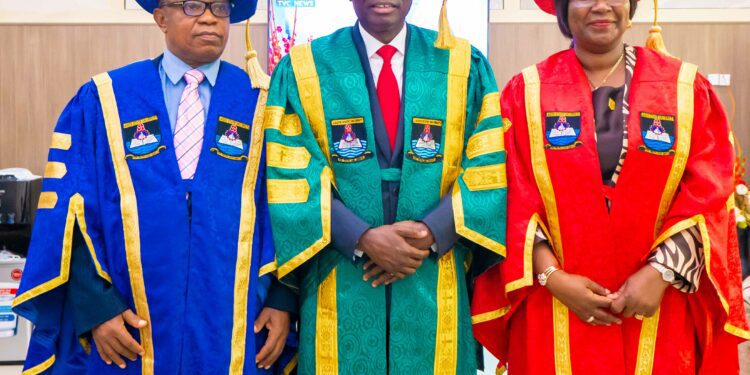 The Visitor and Lagos State Governor, Mr Babajide Sanwo-Olu, flanked by the Vice Chancellor, Lagos State University (LASU), Professor Ibiyemi Olatunji-Bello (right) and Pro-Chancellor and Chairman, Governing Council, Sir David Sunmoni (left) during the 26th Convocation ceremony of LASU at the Buba Marwa Auditorium, Ojo, on Thursday, 22 June 2023.The Visitor and Lagos State Governor, Mr Babajide Sanwo-Olu (second right) congratulating the Overall Best Graduating student, Lagos State University (LASU) 2021/2022, Aminat Yusuf Imoitsemeh (second left), while the Vice Chancellor of LASU, Professor Ibiyemi Olatunji-Bello (left) and the Chancellor, Professor Gbolahan Elias, SAN (right) watch on during the 26th Convocation ceremony of LASU at the Buba Marwa Auditorium, Ojo, on Thursday, 22 June 2023.Former Governor of Lagos State and former Minister of Works, Mr Babatunde Fashola, SAN (left) conferred with Honorary Doctorate Degree; the Visitor and Lagos State Governor, Mr Babajide Sanwo-Olu and the Vice Chancellor, Lagos State University (LASU), Professor Ibiyemi Olatunji-Bello during the 26th Convocation ceremony of LASU at the Buba Marwa Auditorium, Ojo,on Thursday, 22 June 2023.Former Governor of Ekiti State, Dr Kayode Fayemi (left) conferred with Honorary Doctorate Degree; the Visitor and Lagos State Governor, Mr Babajide Sanwo-Olu (middle) and the Vice Chancellor, Professor Ibiyemi Olatunji-Bello during the 26th Convocation ceremony of LASU at the Buba Marwa Auditorium, Ojo,on Thursday, 22 June 2023.Elegushi of Ikateland, Oba Saheed Elegushi, Kusenla III (left) conferred with Honorary Doctorate Degree; the Visitor and Lagos State Governor, Mr Babajide Sanwo-Olu (middle) and the Vice Chancellor, Lagos State University (LASU), Professor Ibiyemi Olatunji-Bello during the 26th Convocation ceremony of LASU at the Buba Marwa Auditorium, Ojo, on Thursday, 22 June 2023.The Visitor and Lagos State Governor, Mr Babajide Sanwo- (right), former Governor of Lagos State and former Minister of Works, Mr Babatunde Fashola (SAN) conferred with Honorary Doctorate Degree, and Pro-Chancellor and Chairman, Governing Council, Sir David Sunmoni (left) during the 26th Convocation ceremony of LASU at the Buba Marwa Auditorium, Ojo,on Thursday, 22 June 2023.Vice Chancellor, Lagos State University (LASU), Professor Ibiyemi Olatunji-Bello (left); the Pro-Chancellor and Chairman, Governing Council, Sir David Sunmoni (second left); presents a frame to the Visitor and Lagos State Governor, Mr Babajide Sanwo-Olu (second right) and the Chancellor, Professor Gbolahan Elias, SAN during the 26th Convocation ceremony of LASU at the Buba Marwa Auditorium, Ojo, on Thursday, 22 June 2023.