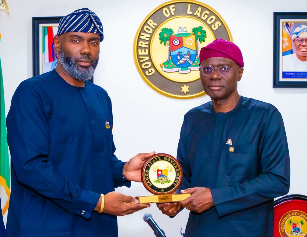 Lagos State Governor, Mr. Babajide Sanwo-Olu (middle); Lagos Curator, National Commission for Museums and Monuments Nigeria (NCMM), Mrs Nkechi Adedeji (5th right); Commissioner for Tourism, Arts and Culture, Mrs Toke Benson-Awoyinka (4th right); his counterpart for Information and Strategy, Mr. Gbenga Omotoso (3rd right); Special Adviser to the Governor on Tourism, Arts and Culture, Mr. Idris Aregbe (2nd right); Director-General, National Commission for Museums and Monuments Nigeria (NCMM), Mr. Olugbile Holloway (5th left); Director, Legal, National Commission for Museums and Monuments Nigeria (NCMM), Dr. Babatunde Adebiyi (4th left) and others, during a courtesy visit at Lagos House, Marina on Tuesday, July 22, 2025.