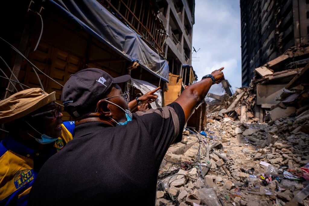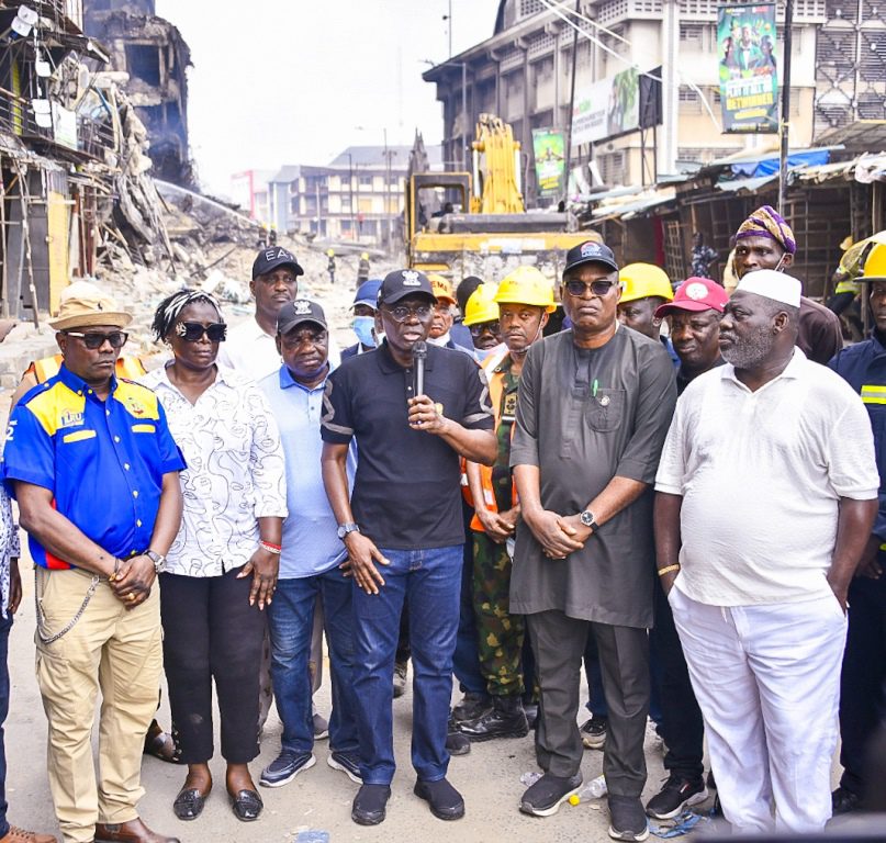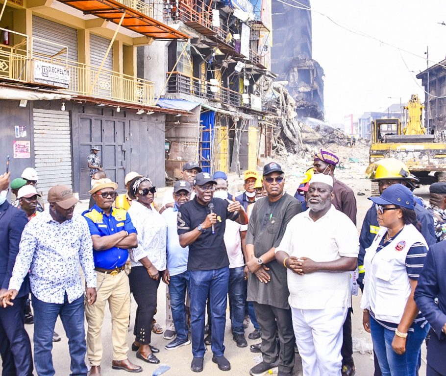 L-R: Special Adviser to the Governor on Media and Publicity, Mr Gboyega Akosile; Permanent Secretary, Lagos State Emergency Management Agency (LASEMA), Dr. Olufemi Oke-Osanyintolu; Special Adviser to the Governor on Central Business District (CBD), Mrs. Bola Olumegbon Lawal; Commissioner for Information and Strategy, Mr. Gbenga Omotoso; Governor of Lagos State, Mr. Babajide Sanwo-Olu; his counterpart for Special Duties and Intergovernmental Relations, Mr Gbenga Oyerinde; permanent secretary, Office of urban development, Arc. Gbolahan Oki and Acting General Manager, Lagos State Building Control Agency (LASBCA), Bldr. Florence Gbaye, during an inspection of the GNI Building following a fire incident at Marina, Lagos, on Friday, January 2nd, 2026.