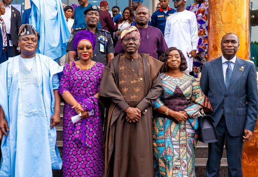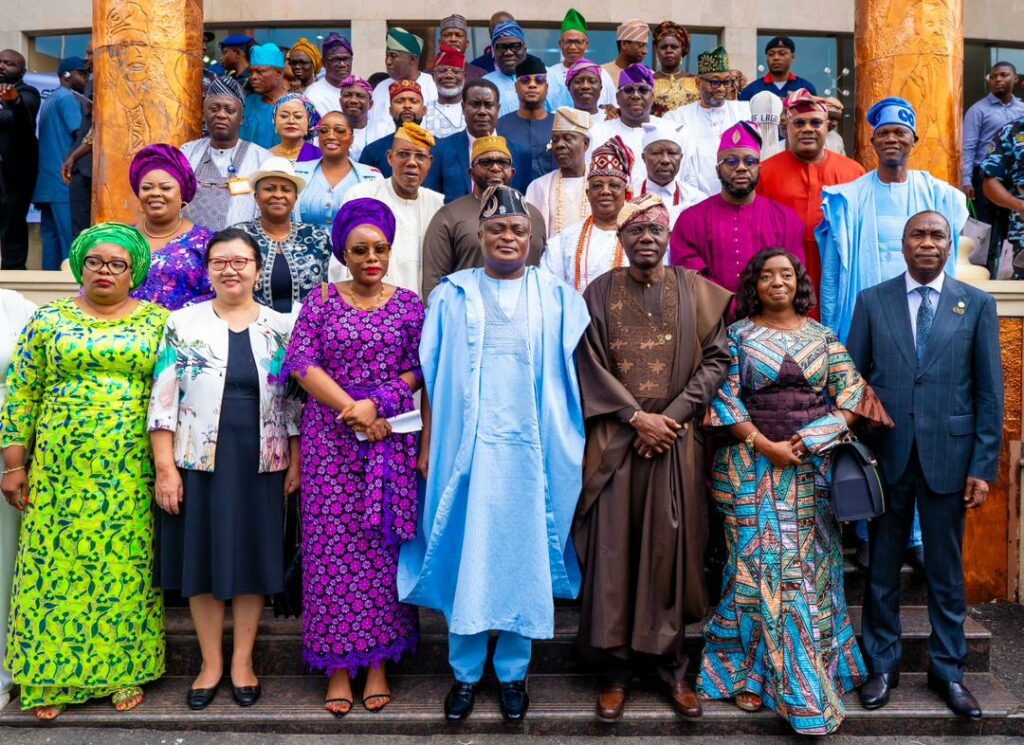 front row l-r: Deputy Speaker, Lagos State House of Assembly, Hon. Mojisola Meranda; Consul General of People’s Republic of China in Lagos, Yan Yuqing; wife of the Speaker, Mrs Falilat Obasa; Rt. Hon. Mudashiru Obasa; Governor Babajide Sanwo-Olu, the First Lady, Dr. Ibijoke Sanwo-Olu; Deputy Governor, Dr. Obafemi Hamzat, members of the House and traditional rulers during the presentation of the Y2026 Budget Estimates to the House, at the Assembly complex, Alausa, Ikeja, on Tuesday, 25 November 2025.